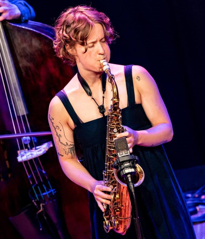 Signe Emmeluth is a Danish saxophonist and composer, living in Oslo. In recent years, Signe has distinguished herself as a strong voice on the stage for improvised music through her playing and composing. In addition to her own quartet Emmeluth's Amoeba, she has a central role in the bands Mudskipper (quartet with Paal Nilssen-Love, Hanne De Backer and Terrie Ex) and OWL (duo with Karl Bjorå). In 2021 Signe received SpareBank 1 SMN JazZtipendiat. She has also collaborated with artists such as Mats Gustafsson, Pascal Niggenkemper, John Edwards and Mette Rasmussen. In addition, she was involved in the organizational work with All Ears, Improverk and in PØKK, concert series for improvised music.