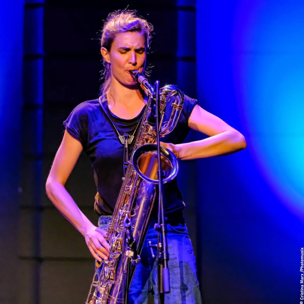 Hanne De Backer is an Antwerp based saxophone player and theater performer. After graduating from the famous Herman Teirlinck Institute in Antwerp as an actress in 2010, she discovered the baritone saxophone and found herself really pulled towards the instrument. Hanne wants to exploit the impact of music and performance without being limited by boundaries or styles. In 2017 she released her debut LP “Gabbro” together with longtime collaborator Marc De Maeseneer. They played there release-concert in the Oorstof-series of Sound in Motion and went on tour through Finland, Lettland, Poland, Germany and Belgium. .
